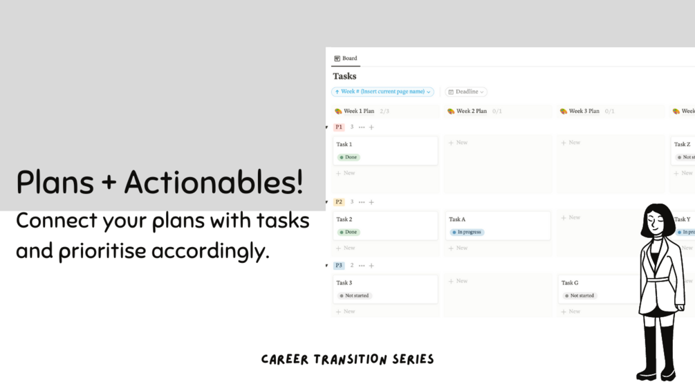 This template serves to bridge that gap for young professional working adults who are looking for a system to consolidate what they need to know/do for a job transition into a new role or company.